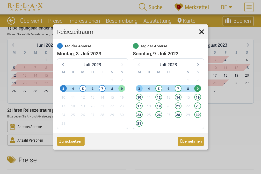 Relax Cottage Buchungsplattform für exklusive Feriensuiten